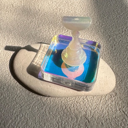 シンプルなスクエアデザインの台座に磁石脱着が可能なチップスタンドがセットになっています。チップスタンド部分はミルキーオーロラカラーです。