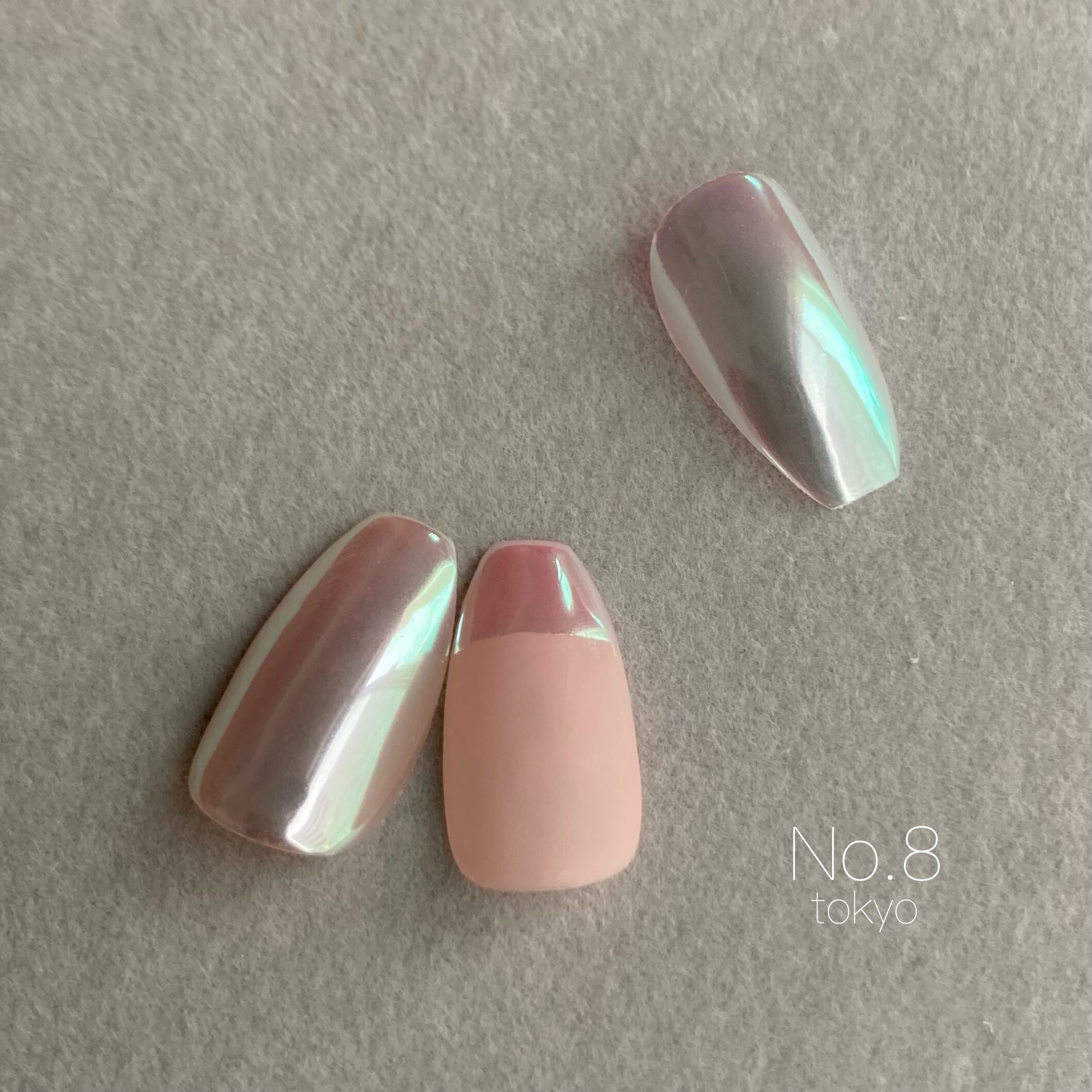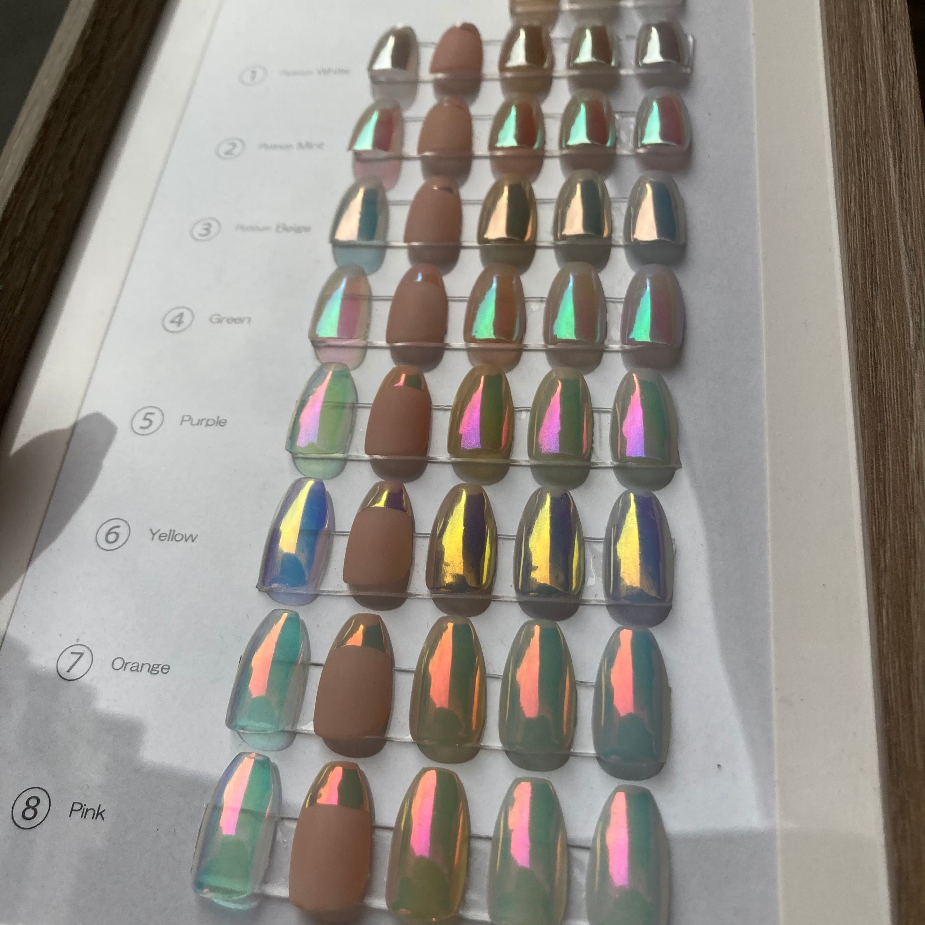 まるでオーロラシートを爪全面に貼ったような粒感を感じさせないオーロラパウダー