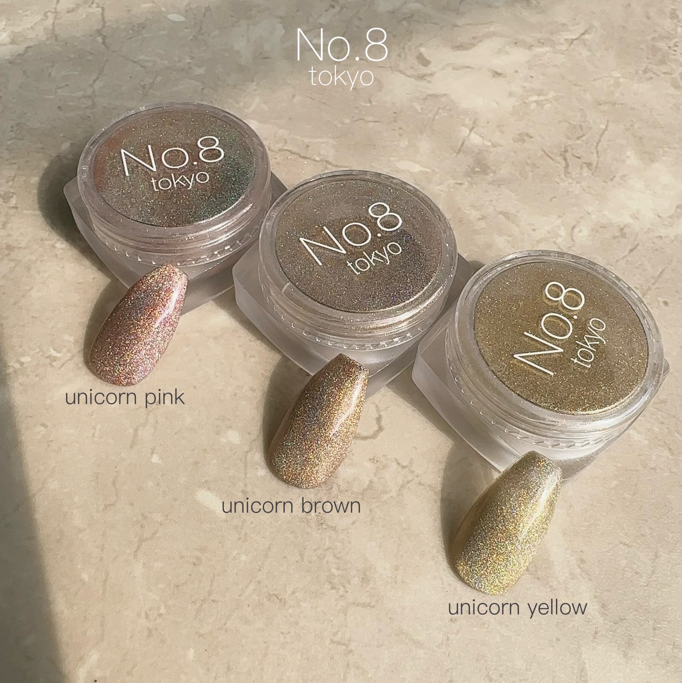 マグネットパウダー3種類(ユニコーンイエロー・ユニコーンブラウン・ユニコーンピンク)をセットにしました。