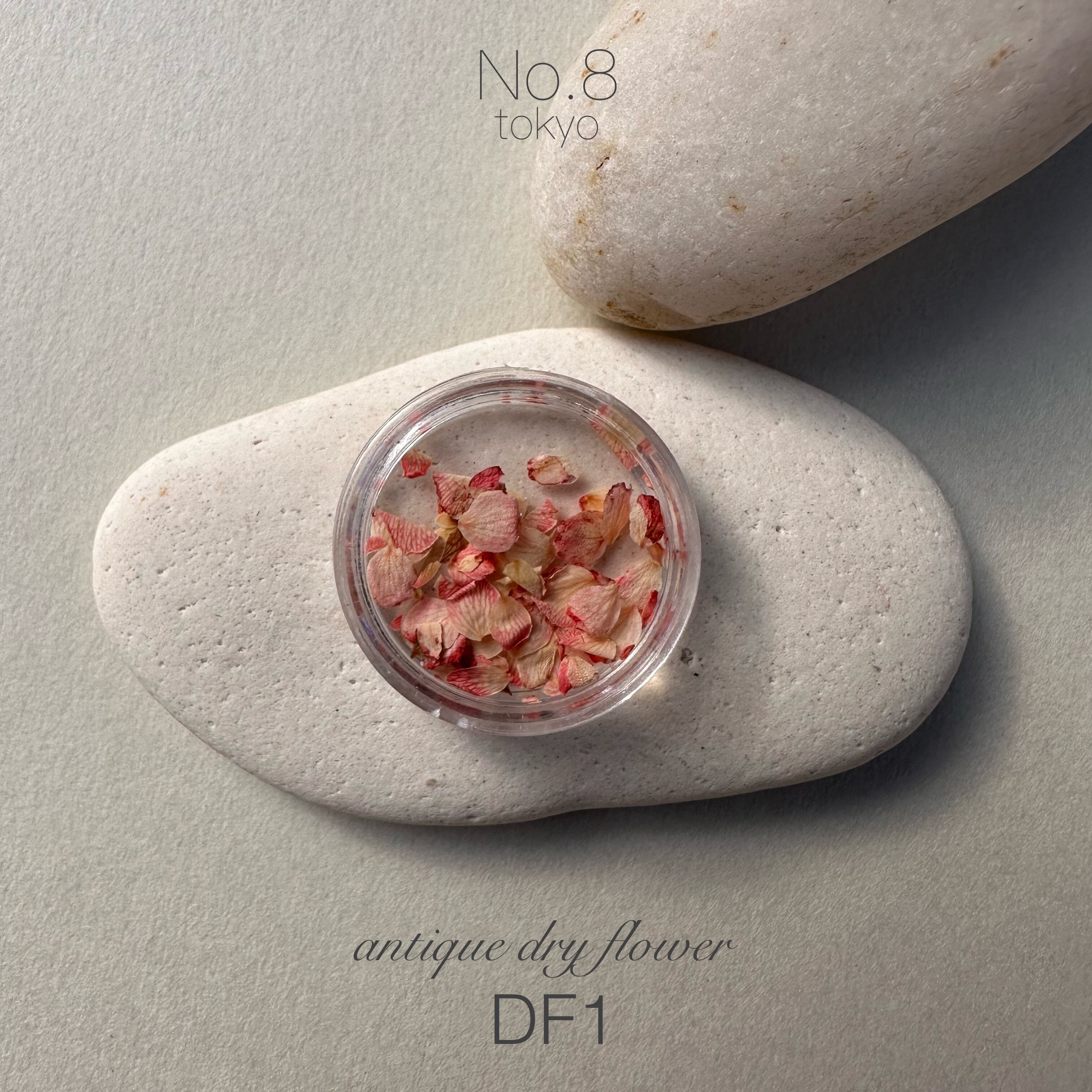 「DF1」はアイボリー(~ベージュブラウン)の色味から華やかでかわいらしいピンクの色味にグラデーションになった花びらのドライフラワーです。