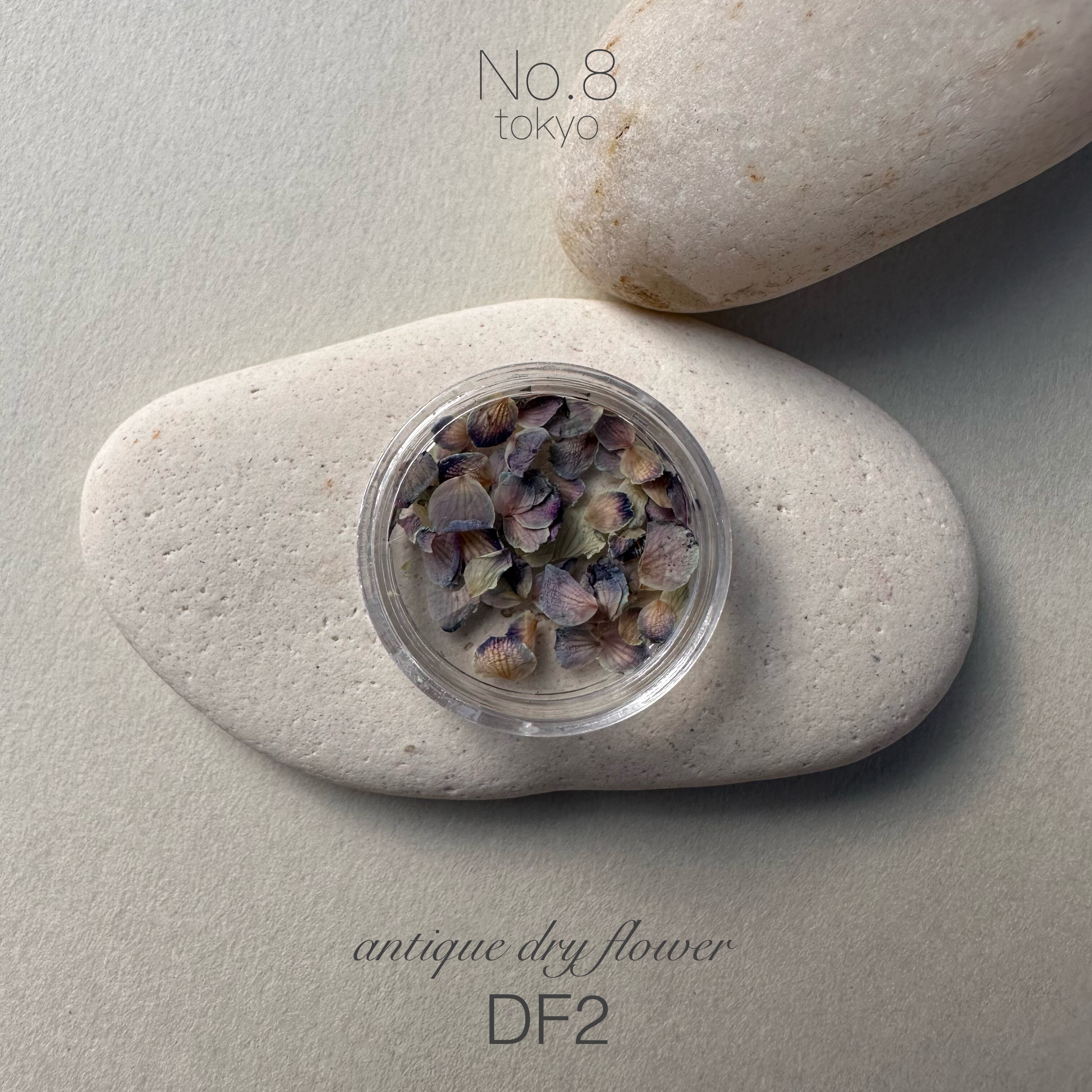 「DF2」はアイボリー(~ベージュブラウン)の色味からあじさいのようなブルーパープルの色味にグラデーションになった花びらのドライフラワーです。