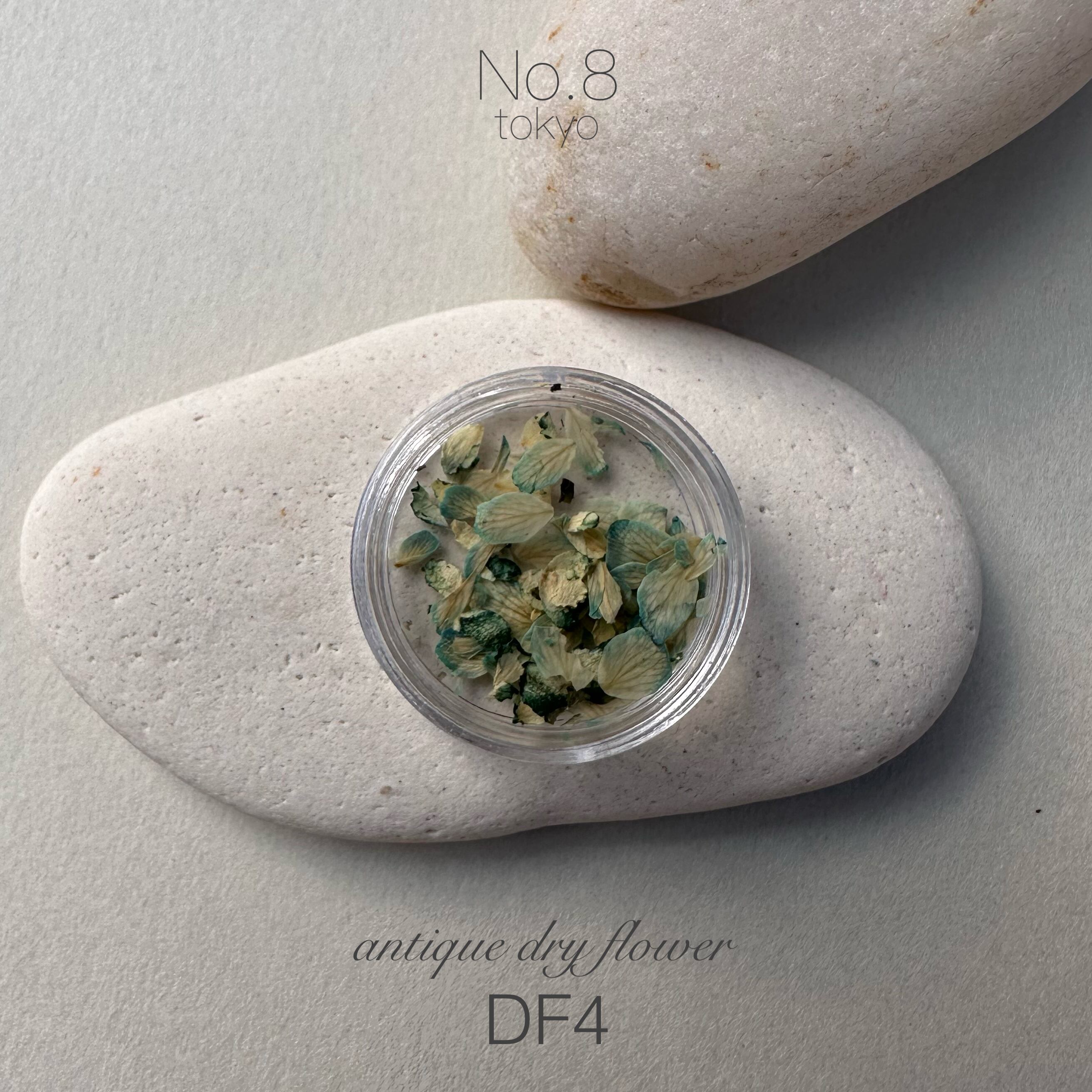 「DF4」はアイボリー(~ベージュブラウン)の色味からくすみのあるブルーグリーンの色味にグラデーションになった花びらのドライフラワーです。
