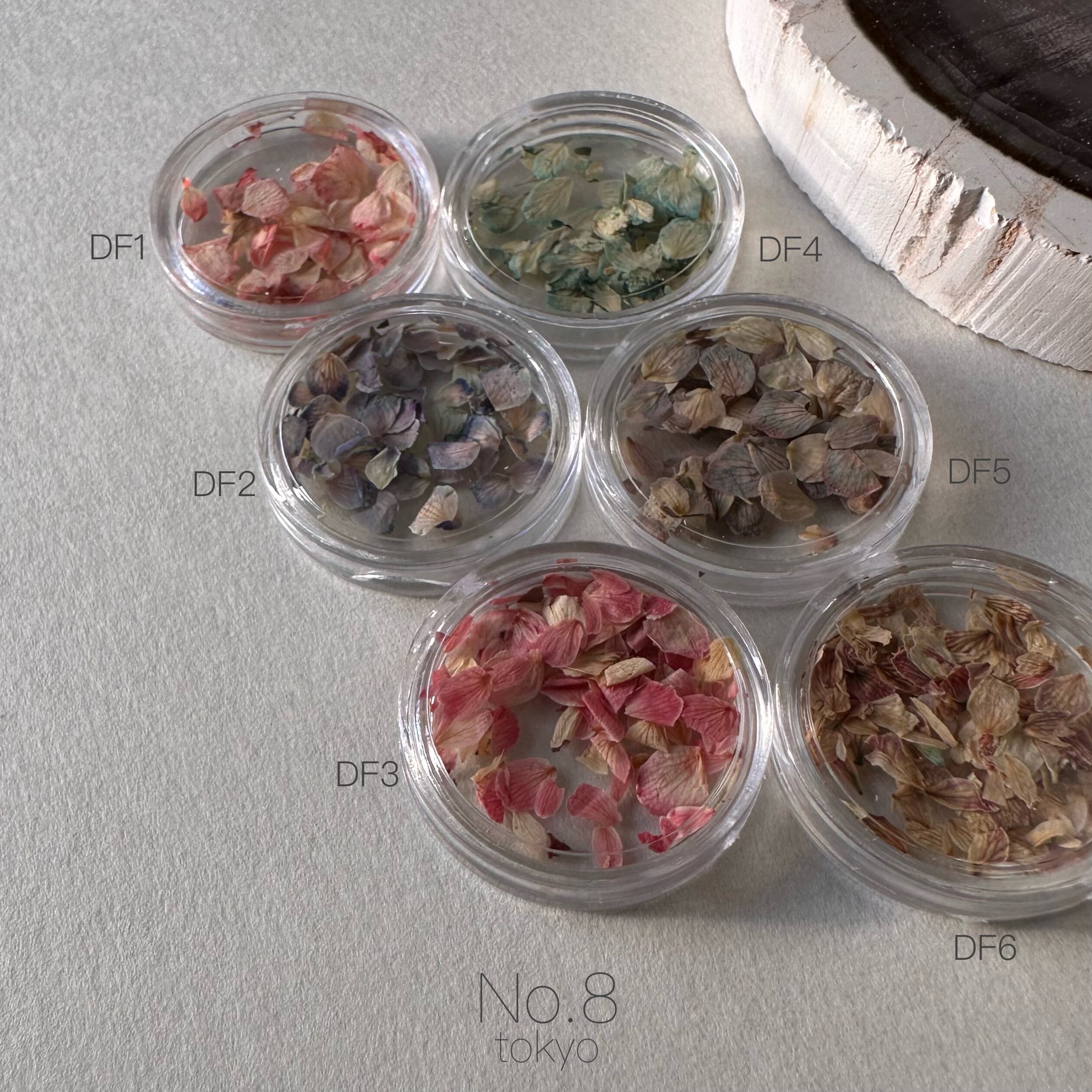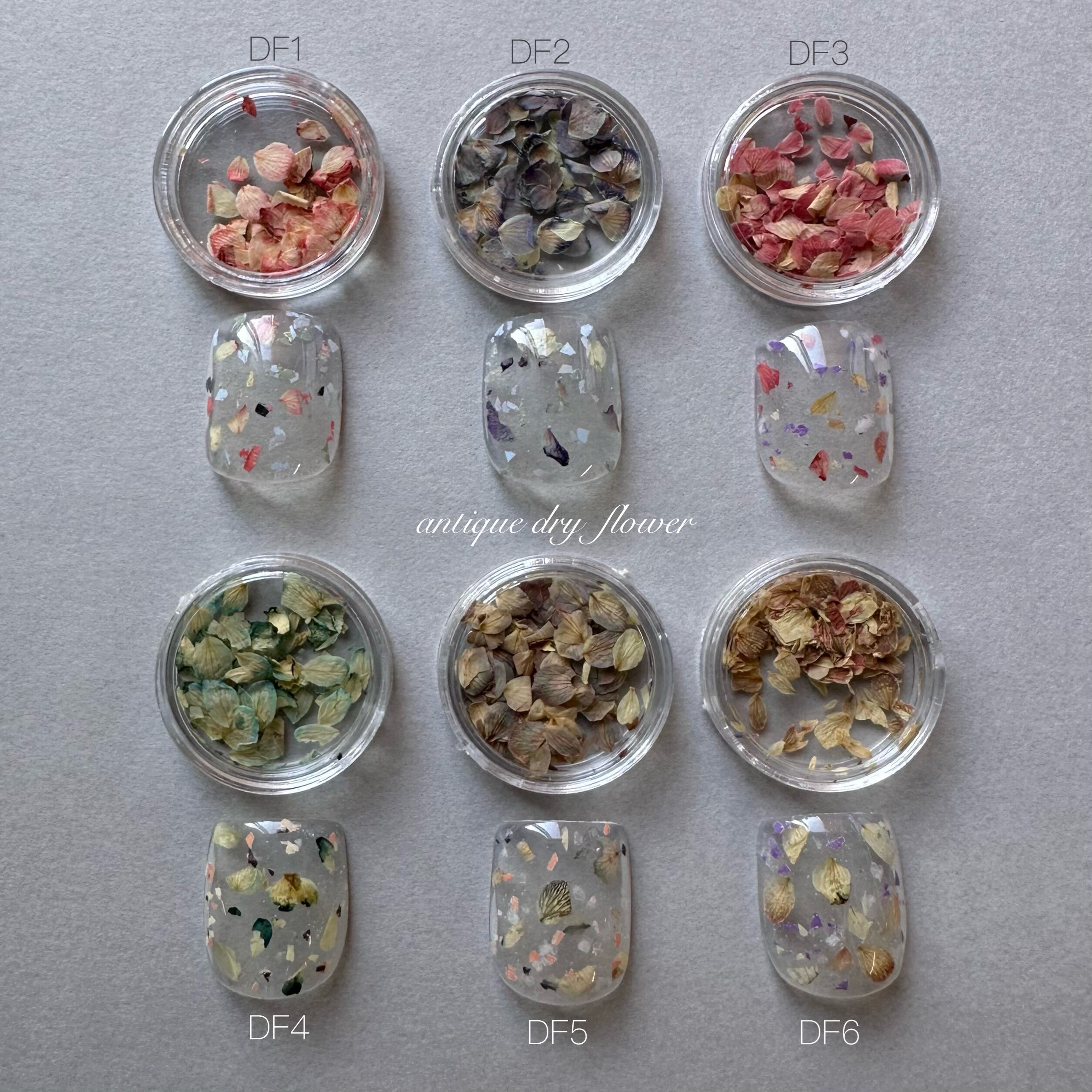 「DF5」はアイボリー(~イエローピンクベージュ)の色味からくすみのある淡いネイビーの色味にグラデーションになった花びらのドライフラワーです。