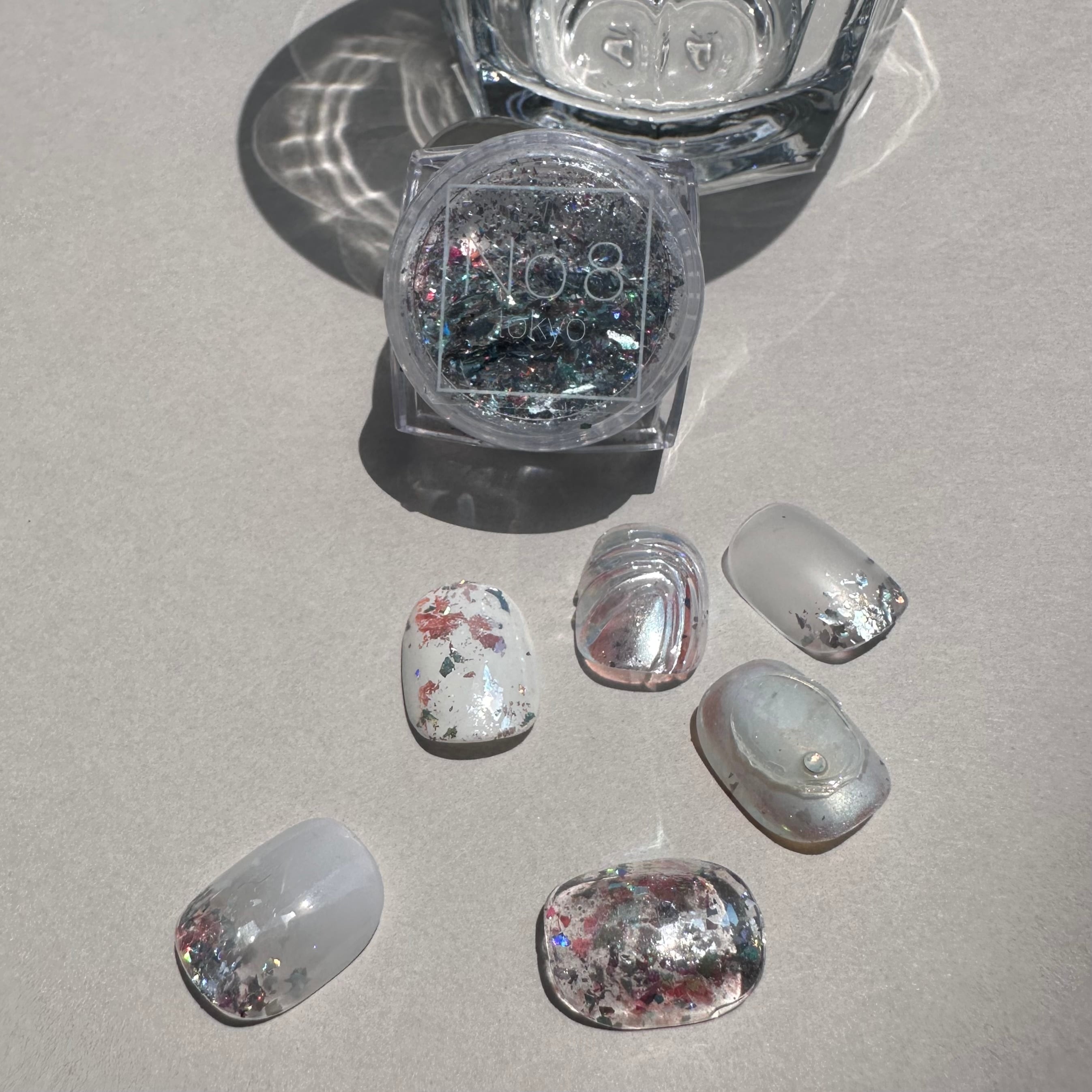 極薄の偏光カラーの箔型グリッターパウダーです。