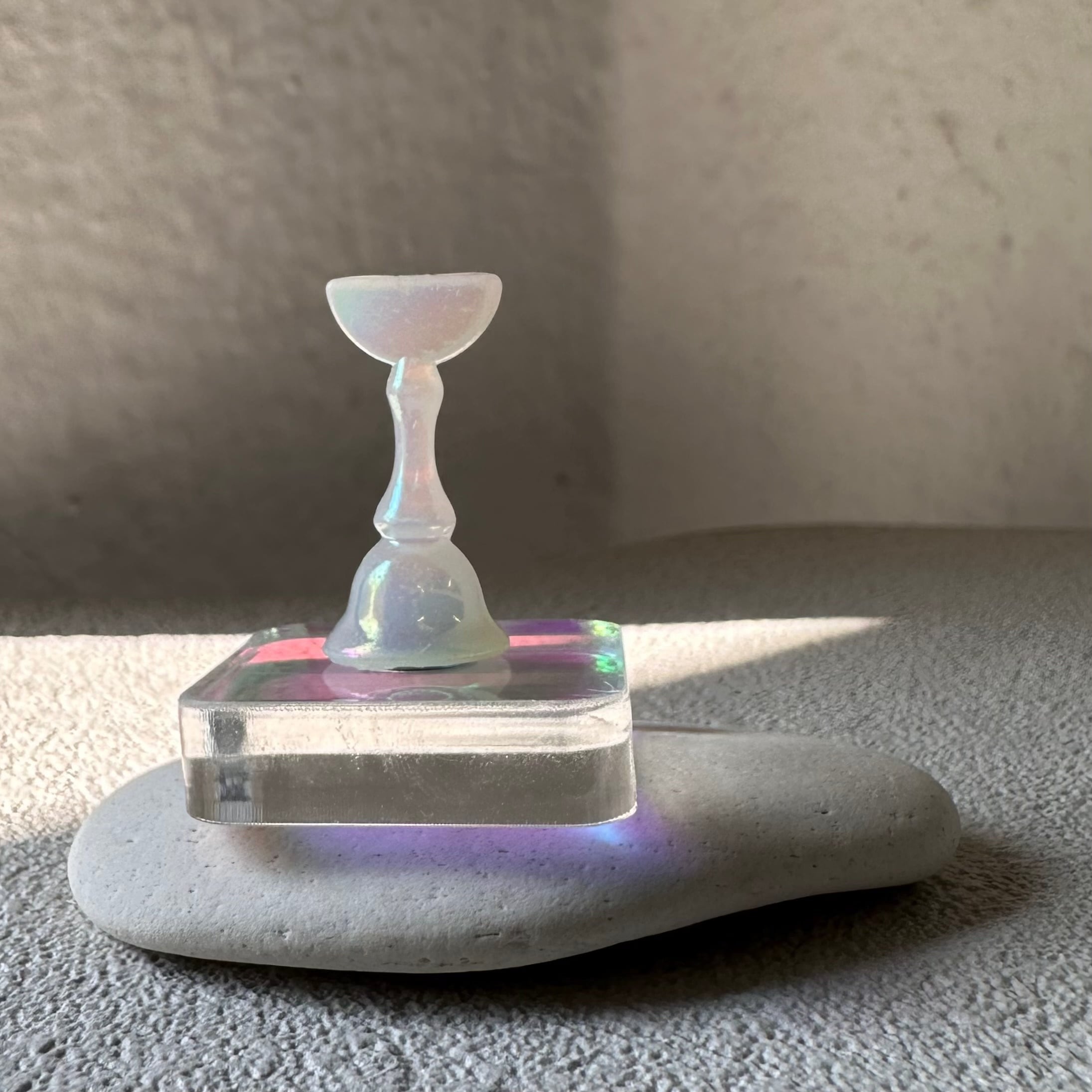 シンプルなスクエアデザインの台座に磁石脱着が可能なチップスタンドがセットになっています。チップスタンド部分はミルキーオーロラカラーです。